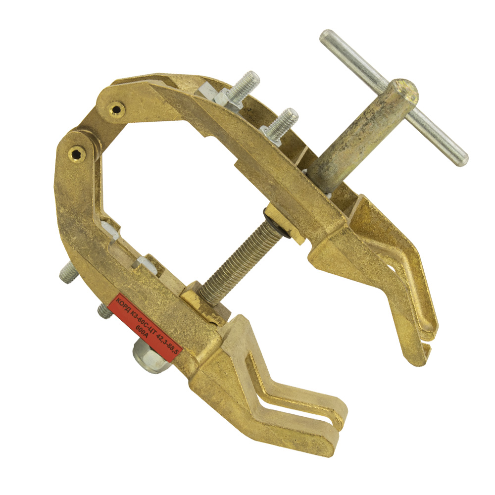 Клемма заземления КЗ-60С-ЦТ 42,3-88,5 (600А, ф труб 42,3-88,5 мм), КОРД предназначена для центрирования и «прихватки» предварительно выровненных труб, а также для соединения сварочных компонентов общей толщиной до 90 мм.