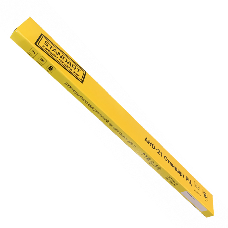 Электроды АНО-21 Стандарт РЦ ф 3,0 мм предназначены для сварки изделий из углеродистых сталей с временным сопротивлением разрыву до 50 кгс/мм2 на переменном и постоянном токе любой полярности во всех пространственных положениях.