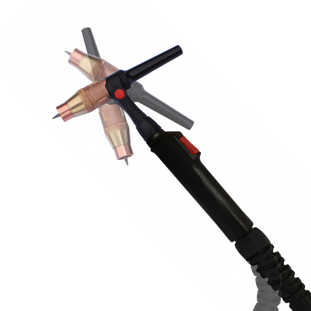 В шлейфе горелки для подачи и слива воды использованы гибкие армированные трубки, выдерживающие давление до 5 бар и напряжение осциллятора. Ввод трубок в рукоятку через сферический шарнир и гибкую резиновую муфту, облегчает тонкое манипулирование горелкой, предотвращая при этом пережим трубок. Трубка слива воды имеет повышенный внутренний диаметр, достаточный для размещения сварочного