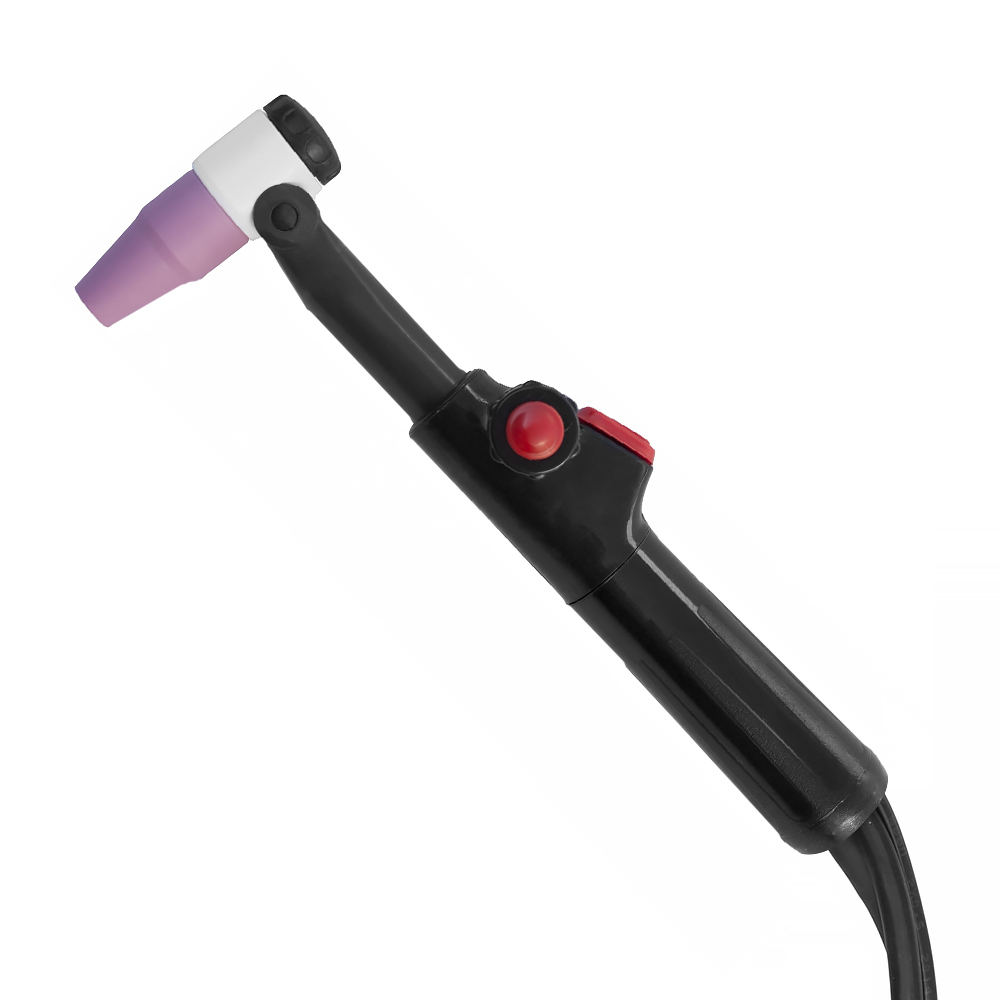 Горелка имеет кнопку дистанционного управления сварочным током и краник для регулирования расхода защитного газа.