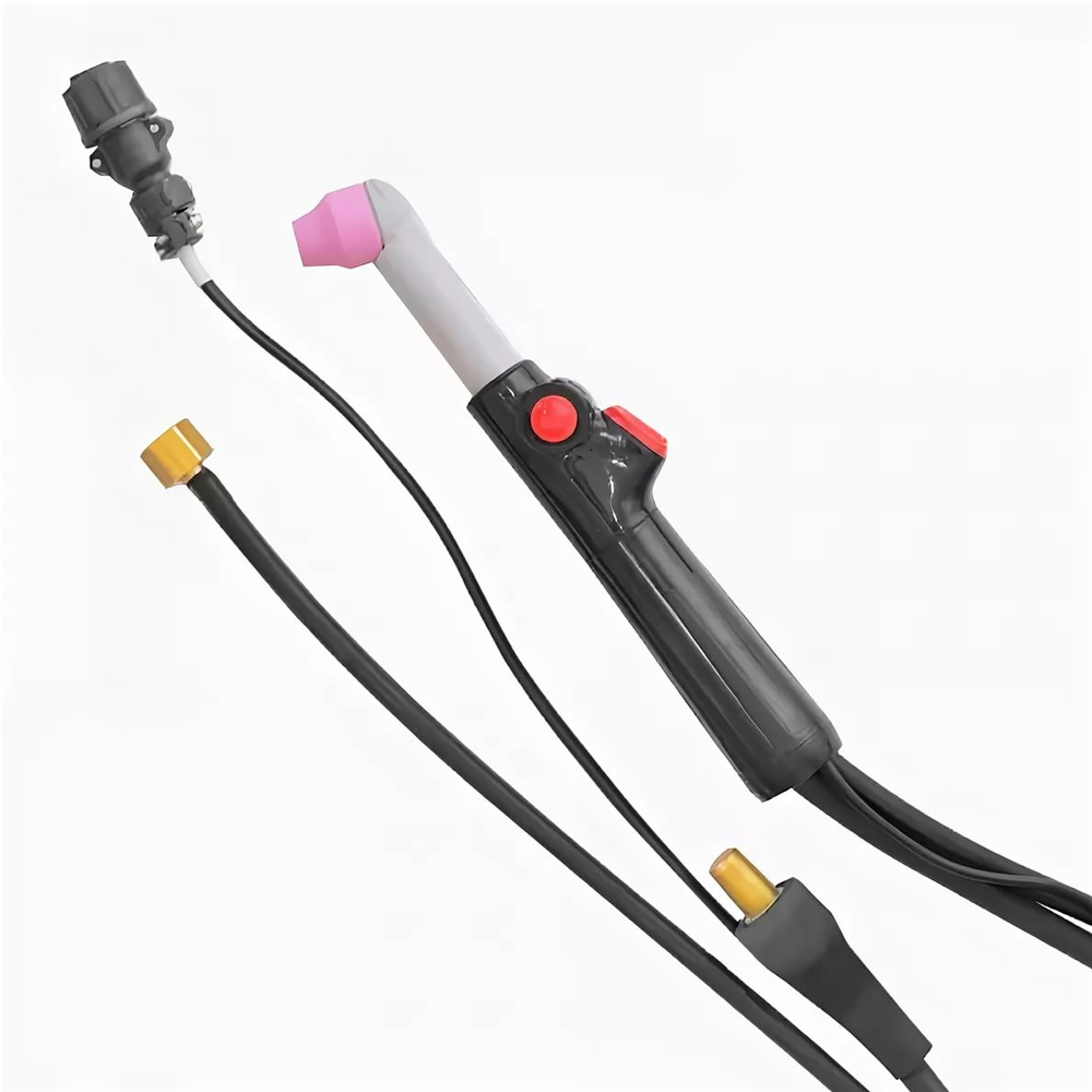 Горелка аргонодуговая АГНИ-03/04М имеет кнопку дистанционного управления сварочным током и краник для регулирования расхода защитного газа.