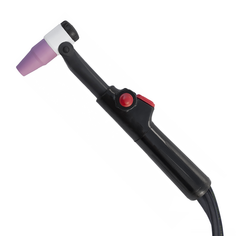 Не охлаждаемая, с раздельным токогазоподводом горелка Агни-03/07М предназначена для ручной сварки не плавящимся электродом малоуглеродистых и нержавеющих сталей, сплавов меди, никеля, титана на постоянном токе прямой полярности, а так же алюминия и его сплавов на переменном токе. Горелка не имеет водяного охлаждения, поэтому ее применение особенно удобно, когда возникают трудности с использованием охлаждающей воды - на монтаже, на большой высоте, при отрицательных температурах, в условиях небольших производств и мастерских. Конструкция горелки обеспечивает поворот головки в удобное для работы положение относительно продольной оси рукоятки на ±180° и на ±110°относительно поперечной оси. Горелка имеет кнопку дистанционного управления сварочным током и краник для регулирования расхода защитного газа. Подвод защитного газа (аргона) и сварочного тока осуществляется раздельно.