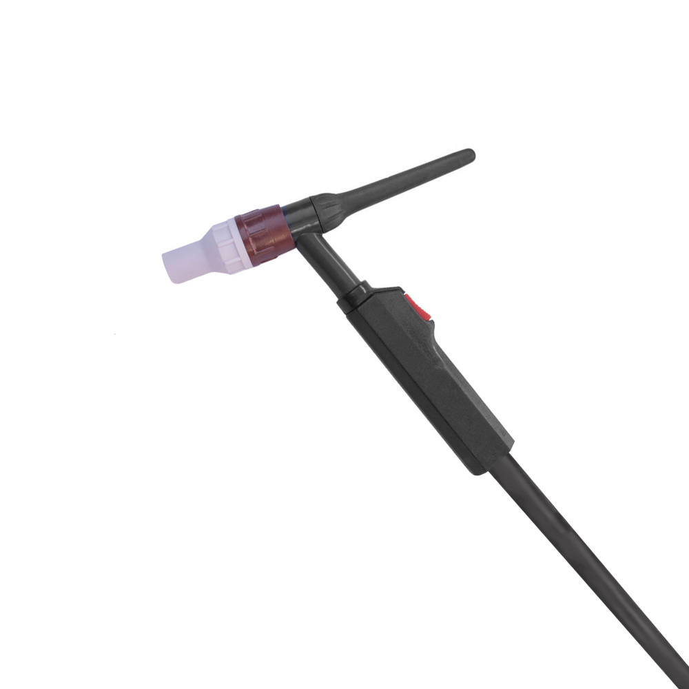 Горелка Агни-25 предназначена для ручной сварки не плавящимся электродом в среде инертных газов малоуглеродистых и нержавеющих сталей, сплавов меди, никеля, титана на постоянном токе прямой полярности током силой до 500А, а так же для сварки алюминиевых сплавов на переменном токе силой до 400А. Горелка имеет водяное охлаждение и предназначена для работы в климатических условиях УХЛ4 по ГОСТ 15150. Конструкция горелки обеспечивает поворот головки относительно продольной оси рукоятки на 180 в удобное для работы положение. Горелка имеет кнопку дистанционного управления сварочным током. Горелка может изготавливаться с присоединительными элементами окончания шлейфа под различные сварочные аппараты, тип присоединительных элементов оговаривается при заказе, по умолчанию горелка изготавливается для подключения к постам типа ПРС (с накидными гайками М14) диаметр электрода 3,0-6,0мм, водяное охлаждение, вставка типа ВМ300 (байонет), гайка накидная М14.