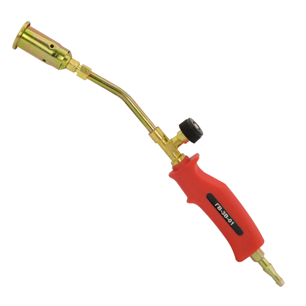 ВАРИАНТ ГВ-3В-01 - ручная газовоздушная пропановая горелка, предназначенная для нагрева изделий и заготовок из черных и цветных металлов, оплавления битумных рулонных материалов, сушки литейных форм, обжига старой краски. В качестве горючего газа применяется пропан-бутановая смесь. Для подключения используется универсальный ниппель диаметром 6/9 мм. Такое исполнение не требует настройки и установки дополнительных переходников. Это значительно упрощает и ускоряет рабочий процесс.