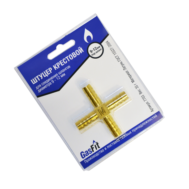 Штуцер крестовой (блистер, ф9/12 мм, елочка 4-х ход.), GasFit