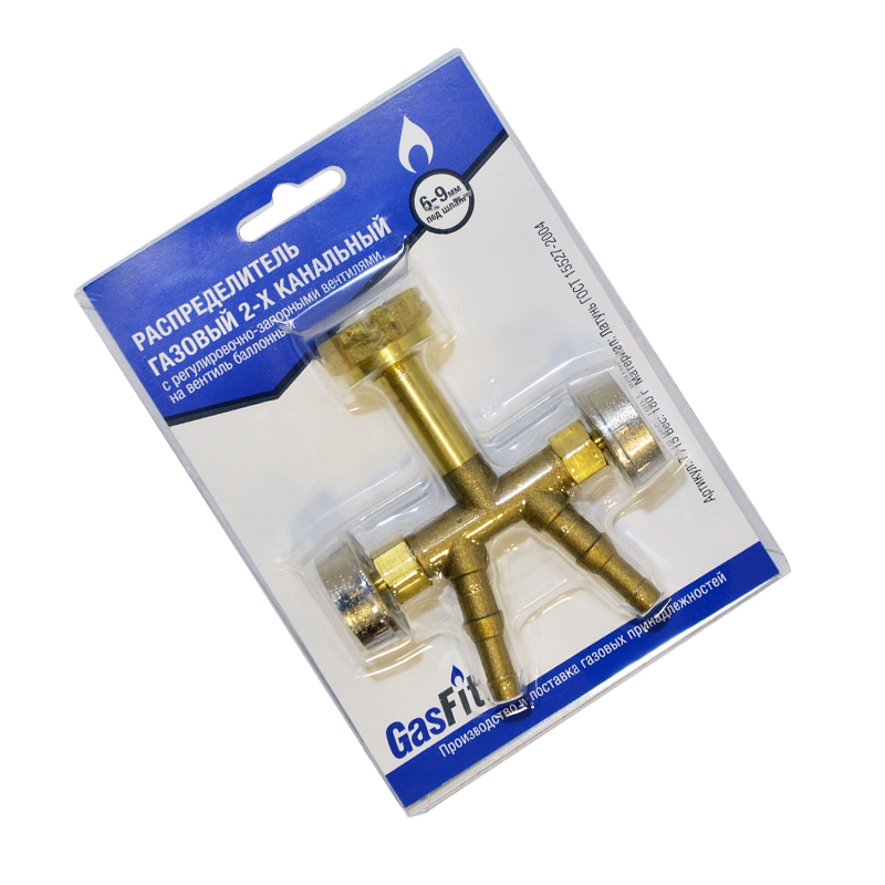 Штуцер-распределитель 2-х канальный с гайкой М22 (блистер, ф6/9 мм, левая, на ВБ), GasFit
