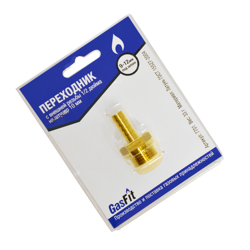 Переходник с внеш. резьбы 1/2 дюйма на штуцер 10 мм (блистер, ф9/12 мм, правая), GasFit