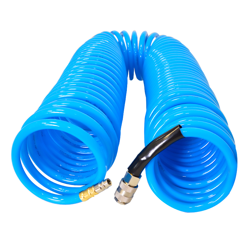 Шланг спиральный с фитингами рапид (полиуретан, 15бар, 8x12мм). Служит спиральным удлинителем между компрессором и рабочим инструментом. Достаточная длина спиральной оснастки позволяет осуществлять работы на необходимом расстоянии от компрессора.