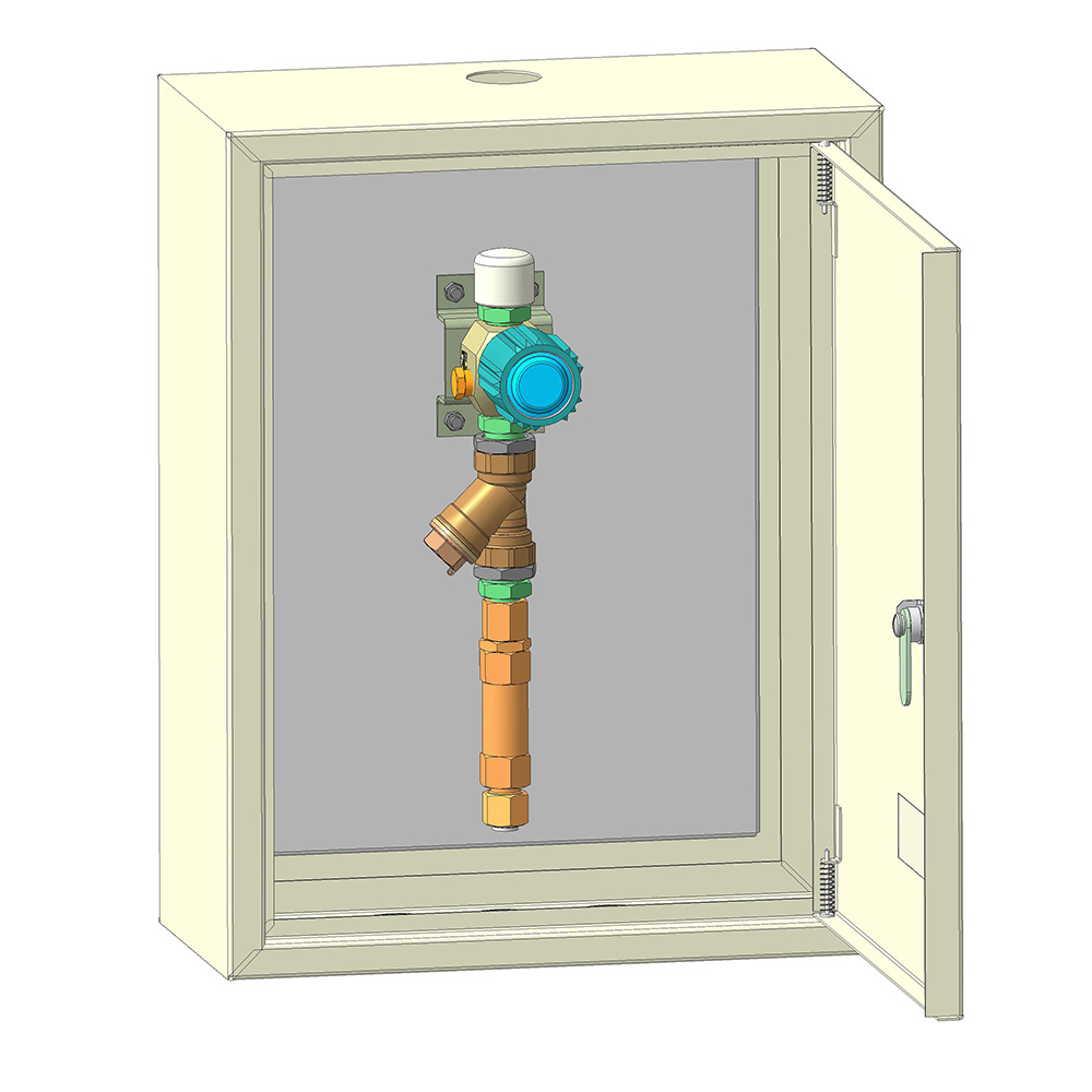Пост газоразборный модель ПГП-10-З закрытого типа находиться в металлическом боксе, имеющем внутренний замок с ключом.