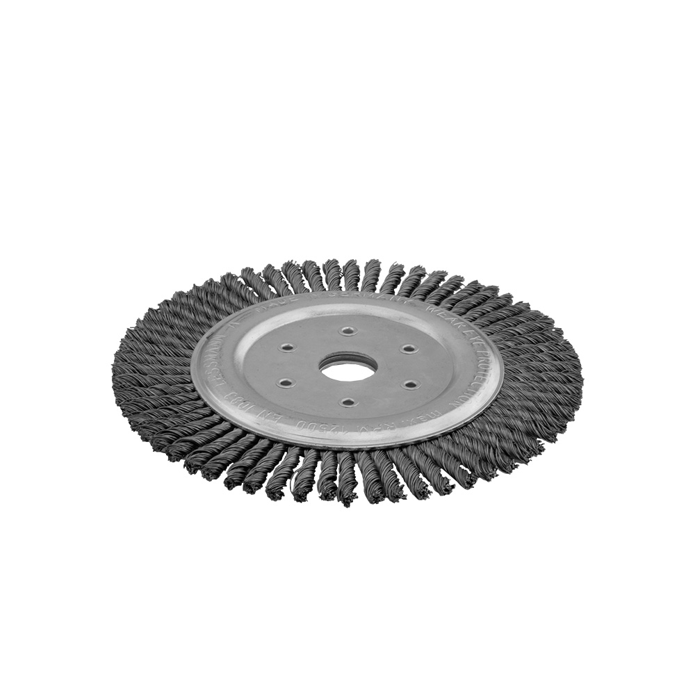 Щетка диаметром 178 мм с прочной стальной проволокой 0,5 мм эффективно удаляет ржавчину, окалину, лак, шлак и загрязнения.