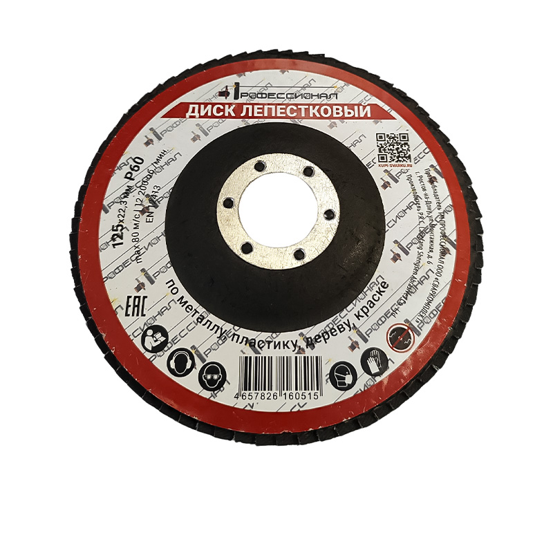Лепестковый зачистной круг Профессионал 125 Р60 предназначен для эффективной обработки металлических поверхностей, удаления ржавчины, окалины, старых покрытий и зачистки сварных швов.