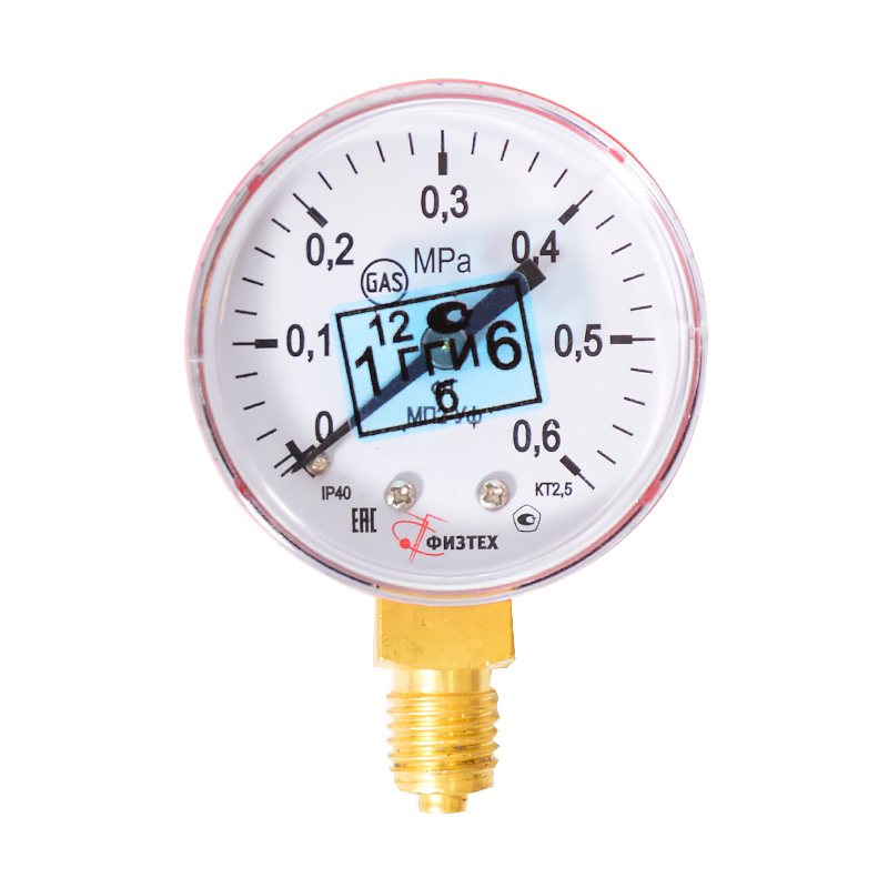 Манометр на редуктор пропановый, метановый с поверкой 0,6 МПа (6 кгс/см кв, кл. т. 2,5)