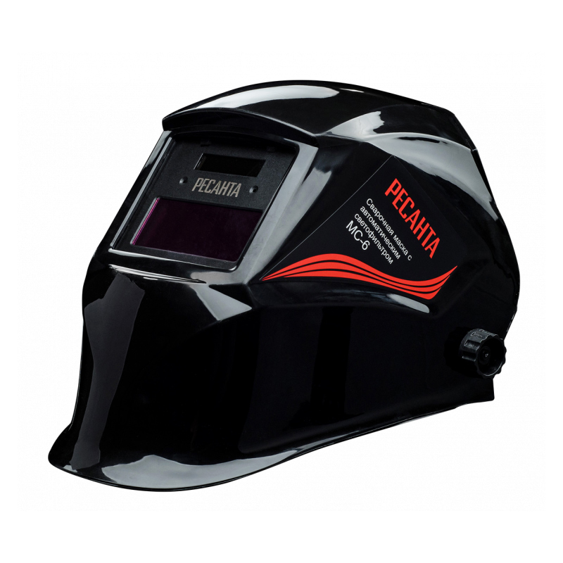 Сварочная маска РЕСАНТА МС-6 предназначена для защиты глаз от видимого, ультрафиолетового и инфракрасного излучения, а также для защиты головы и шеи от попадания искр при сварочных работах. Маска данного типа удобна, поскольку светофильтр автоматически затемняется при зажигании дуги. Такой светофильтр назвали «хамелеоном» из-за способности автоматически затемняться. Степень затемнения можно настраивать с помощью встроенного регулятора в зависимости от модели маски.