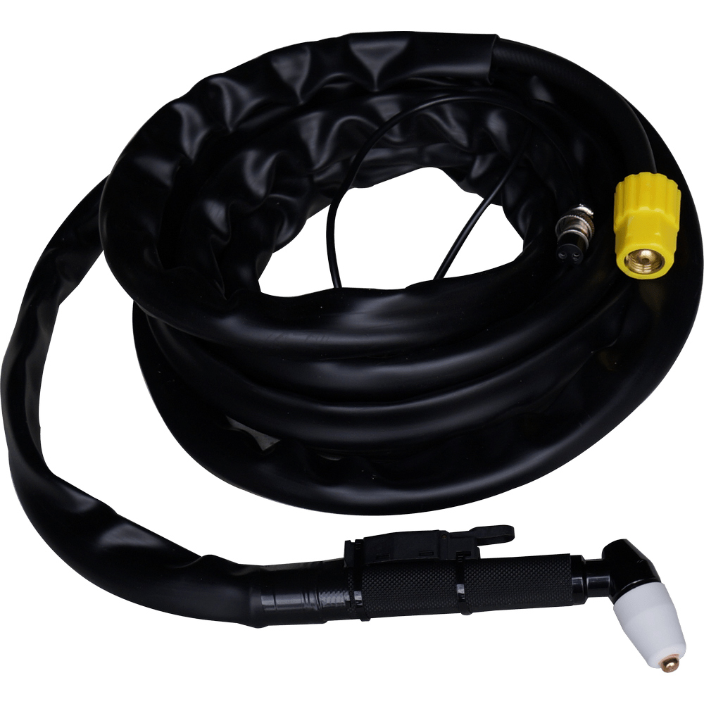 Наличие кабеля длиной 5 метров позволяет выполнять работы на больших площадях без перемещения плазмореза. Конструкция резака предусматривает кнопочное управление.