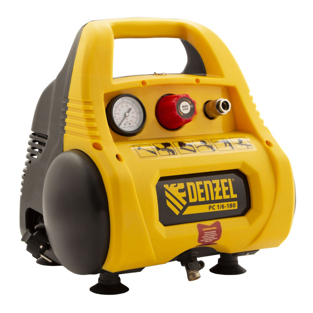 Компрессор поршневой РС 1/6-180 безмасляный (220 В, 6 л), DENZEL