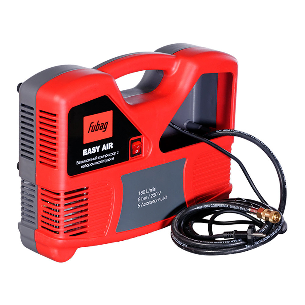 Компрессор безмасляный коаксиальный Easy Air (220 В, 8 бар, 180 л/мин, 1,1 кВт, 6 кг+ 5 предметов), FUBAG
