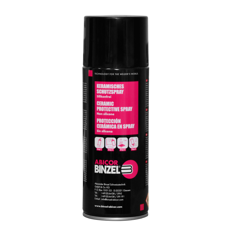 Керамический защитный BINZEL-спрей производится по специальной рецептуре ABICOR BINZEL, не содержит силикона и идеально подходит для сварочных процессов с высоким ПВ.
