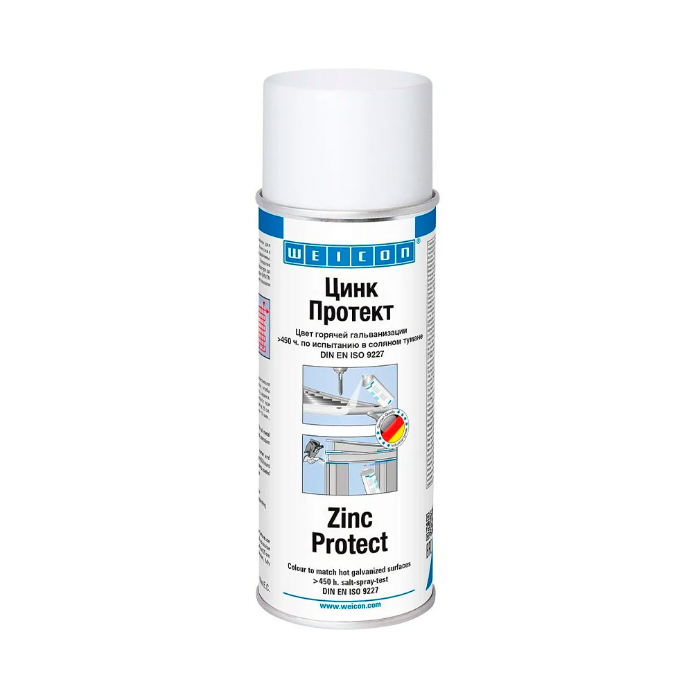 Спрей антикоррозийный WEICON Цинк Протект Спрей предназначен для длительной защиты всех металлических поверхностей. Он защищает металлы от коррозии и ржавчины, быстросохнущий и образует плотное сцепление. Покрытие устойчиво к пресной и соленой воде, а также температуре до +300°C.