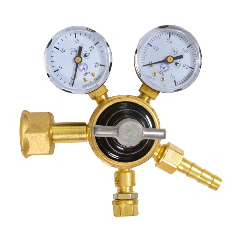 Редуктор, комплектуются двумя манометрами, контролирующими давление на входе и в камере рабочего давления.
