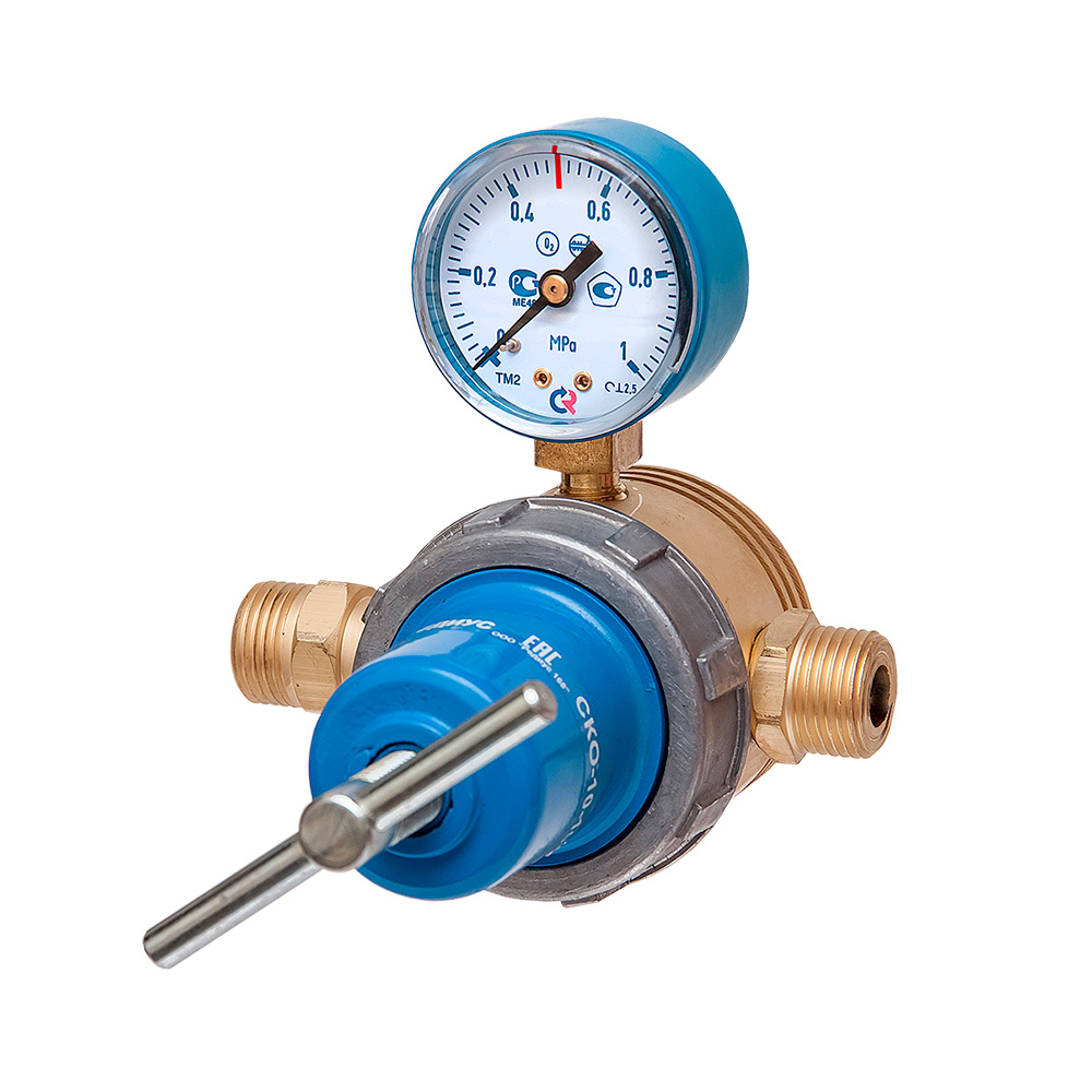 Редуктор кислородный СКО-10-100 (сетевой), REDIUS (редуктор) сетевой одноступенчатый предназначен для понижения давления газа, поступающего из централизованного газораспределительного трубопровода, и автоматического поддержания заданного рабочего давления газа постоянным.