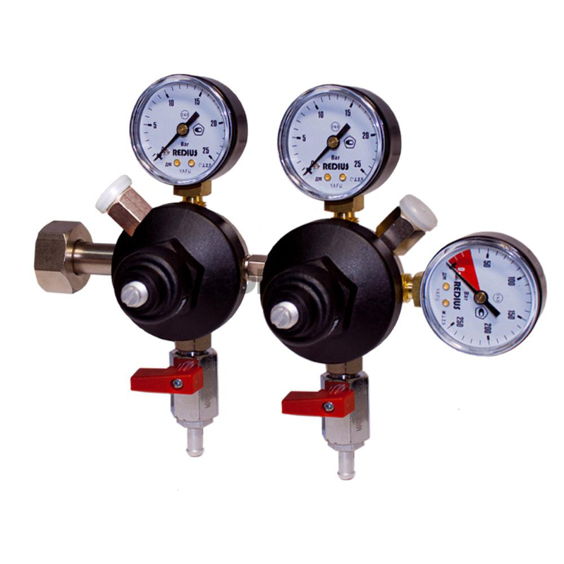 Редуктор углекислотный УР-5-3М1-212 (2 корп.: краник+ниппель 8,6 мм; для 2-х сорт. напитков), REDIUS
