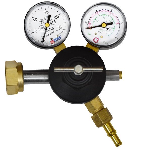 Регулятор расхода баллонный одноступенчатый предназначен для понижения и регулирования давления аргона, поступающего из баллона, и автоматического поддержания постоянного рабочего расхода газа на выходе регулятора в ходе проведения работ. Регулятор имеет манометр высокого давления и манометр низкого давления показывающий расход.
