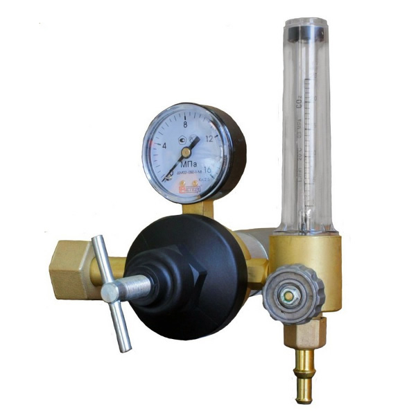 Регулятор расхода баллонный одноступенчатый предназначен для понижения и регулирования давления углекислого газа, поступающего из баллона, и автоматического поддержания постоянного рабочего расхода газа на выходе регулятора в ходе проведения работ. Регулятор имеет манометр высокого давления и поплавковый расходомер с вентилем регулировки расхода газа. Регулятор снабжен встроенным подогревателем газа, что обеспечивает более устойчивую работу и предотвращает замерзание механизмов регулятора при больших расходах газа.