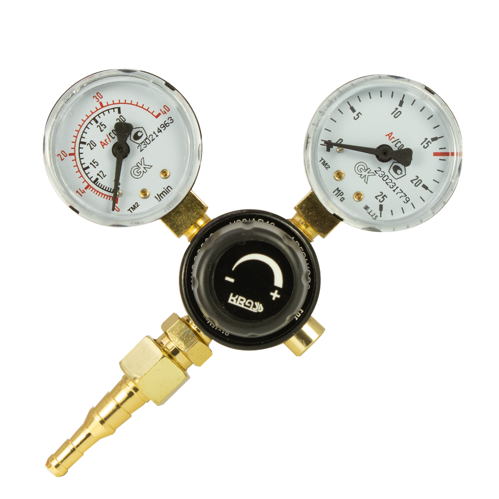 Экономичный универсальный регулятор расхода и давления газа (углекислота/ аргон) в никелированном корпусе, предназначенный для тонкой настройки расхода сварочных газов, понижения давления газа, поступающего из баллона, и автоматического поддержания постоянным заданного рабочего давления.