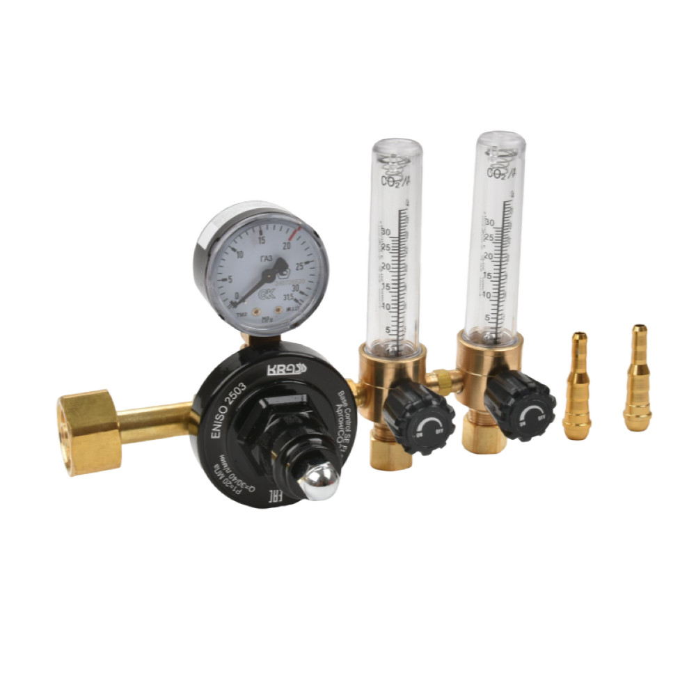 Регулятор для углекислого газа и аргона Base Control SE FLOW с 2 ротаметрами KRASS - регулятор расхода газа баллонный одноступенчатый предназначен для понижения и регулирования давления газа, поступающего из баллона, и автоматического поддержания постоянным заданного рабочего расхода газа при питании постов и установок газовой сварки, резки, пайки, нагрева и других процессов газопламенной обработки.