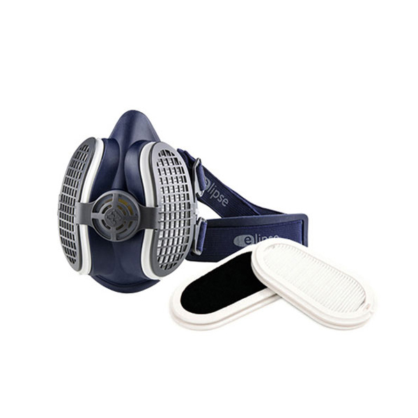 ПРОТИВОАЭРОЗОЛЬНАЯ ПОЛУМАСКА ELIPSE P3 SPR 502 в комплекте со сменными фильтрами с активированным углем для защиты от пыли, дымов и туманов и дополнительной защитой от неприятных запахов и малых концентраций органических паров до ПДК. Размер M/L (средний/большой). Компактная, легкая и эластичная полумаска идеально адаптируется к лицу и обеспечивает полный обзор. Выполнена из медицинского термопластичного эластомера, не вызывает аллергических реакций. Не препятствует ношению средств защиты глаз, лица и слуха. Большой центральный обратный выпускной клапан выдоха позволяет снизить сопротивление дыханию и сводит к минимуму накопление влаги внутри маски. Легкие, нескользящие ремни легко регулируются в 4-х позициях и обеспечивают надежное крепление даже в условиях высокой влажности. , Гофрированные сменные фильтры выполнены по запатентованной технологии HESPA , обеспечивают эффективность минимум 99,95% при размере частиц ≥0,3 микрон ..