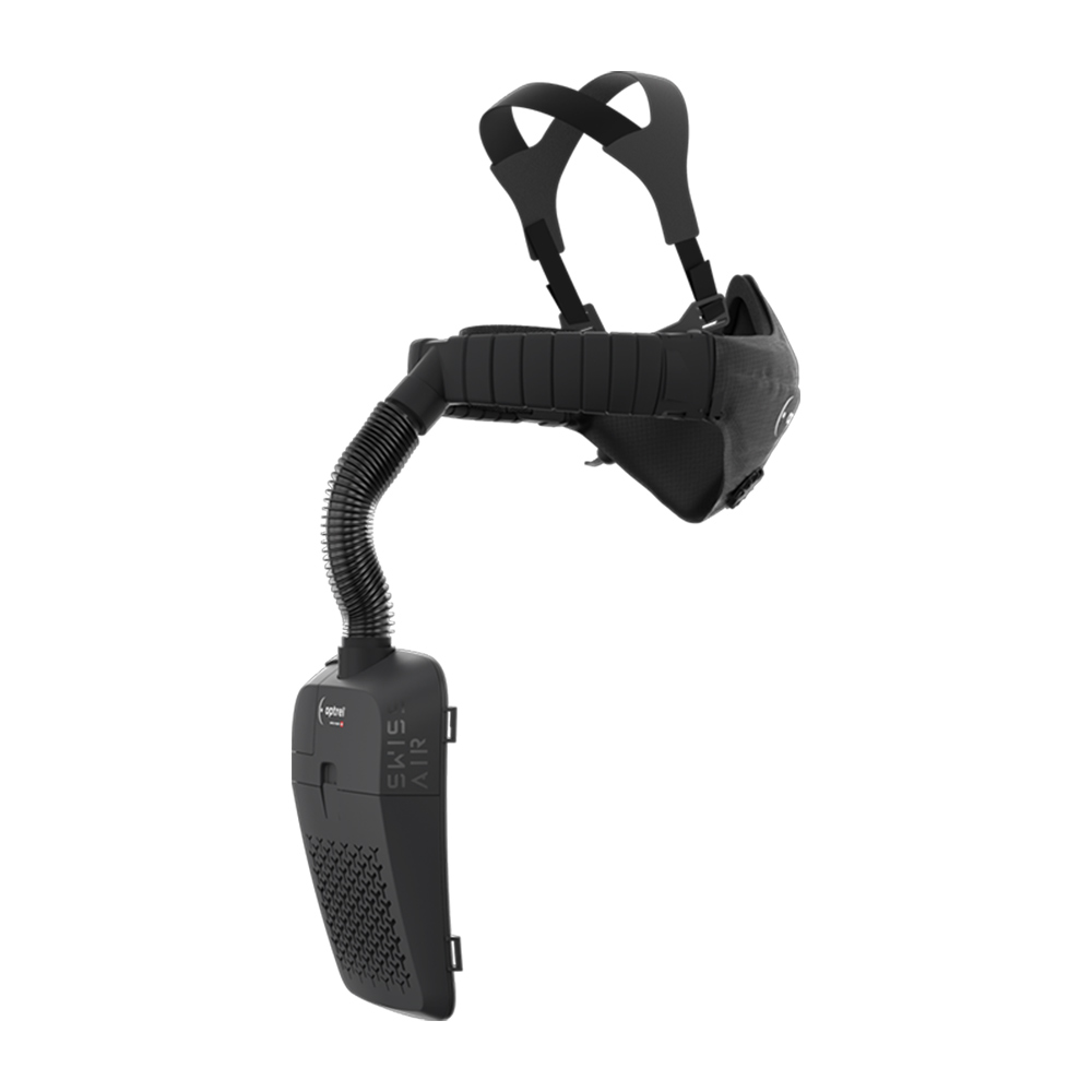 Основным элементом системы защиты органов дыхания optrel swiss air является вентилируемая полумаска, которая полностью закрывает область рта и носа и снабжает ее очищенным воздухом.
