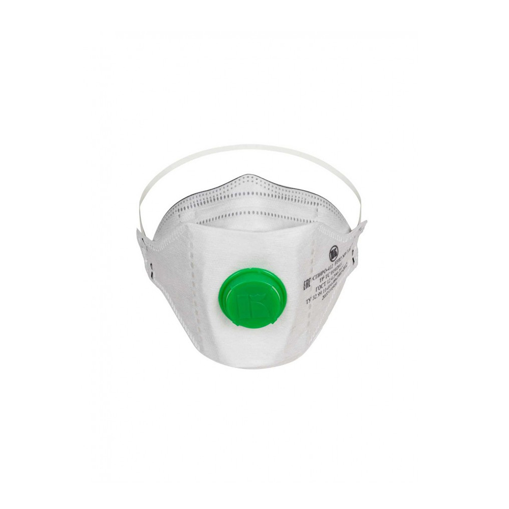 Полумаски фильтрующие «Респираторы «СПИРО-412» выполнены в виде легкой полумаски, складывающейся в три сложения, с клапаном выдоха.