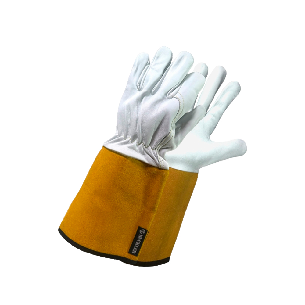 Прочные сварочные (TIG) перчатки-краги PROBUCKLER 130 из высококачественной лицевой козьей кожи, прошитые нитью Kevlar. Отличаются высокой стойкостью к истиранию. Выдерживают контактное тепло до 100 C/212 F. Они устойчивы к искрам при сварке и брызгам при шлифовке.