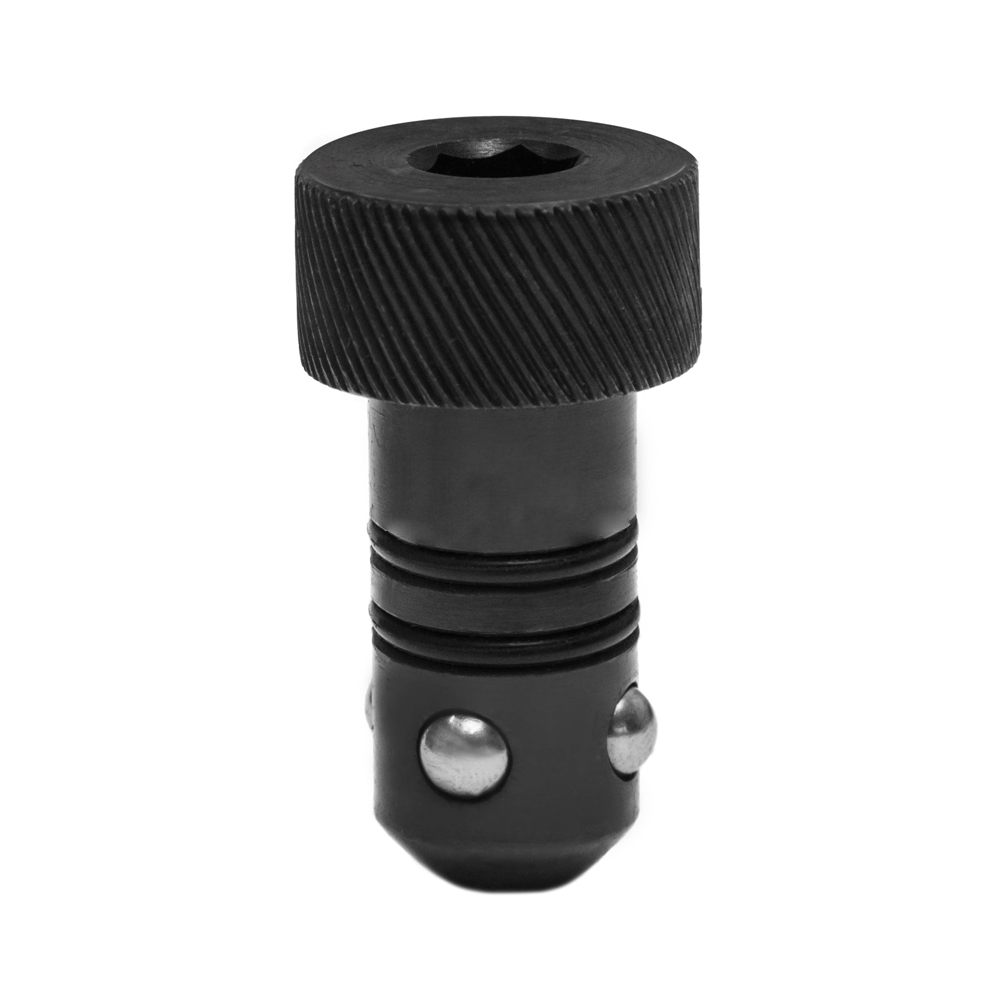 Быстрозажимной болт используется для быстрой и жесткой фиксации изделий на столе. Болт вставляется в отверстие изделия и стола. При закручивании шляпки шток внутри болта выталкивает шарики и фиксирует изделие на столе.