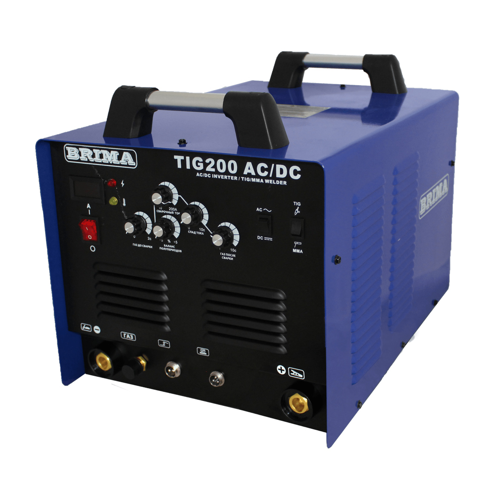 TIG-200 AC / DC BRIMA – универсальная инверторная установка, предназначенная для аргонодуговой сварки неплавящимся вольфрамовым электродом (данный способ сварки в соответствии с ИСО 4063-90 имеет следующее сокращение – TIG Tungsten Inert Gas) таких материалов, как нержавеющая, углеродистая и легированная стали, алюминий, сплавы титана, никеля, меди, латуни и др.