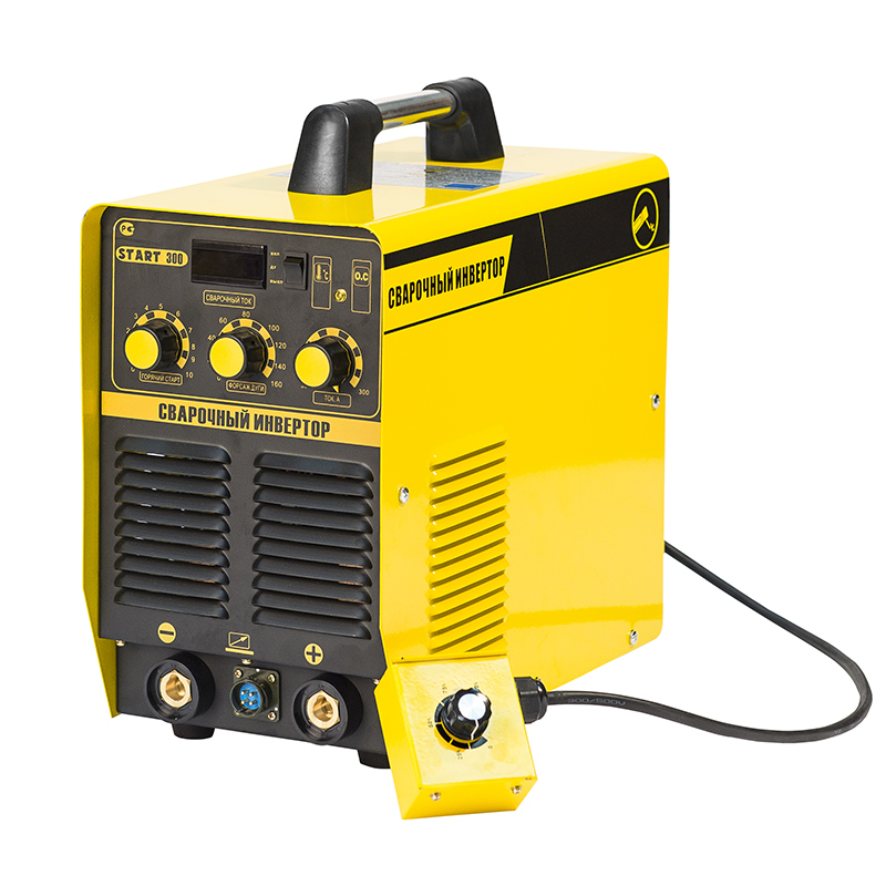 СТАРТ 300 - Сварочный инвертор для ручной дуговой сварки (MMA) штучными электродами. Обладает высокой мощностью, предназначем для полупрофессионального использования. В комплектация данного сварочного инвертора входит ДУ - пульт дистанционного управления (10 м.)
