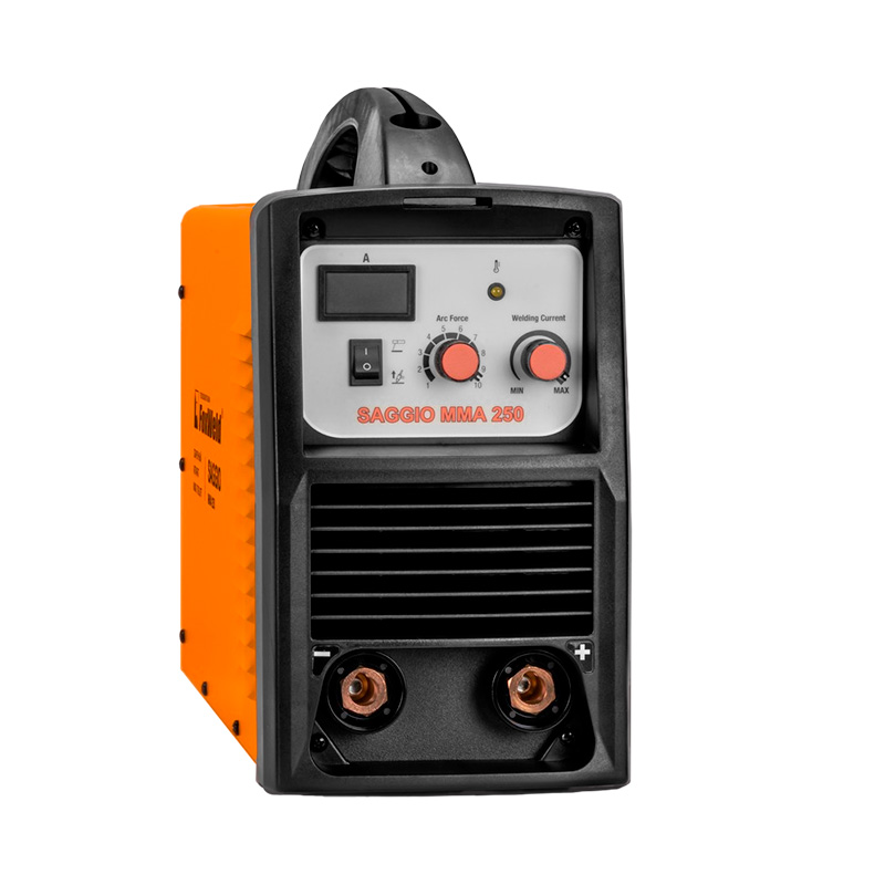 Сварочный аппарат FOXWELD SAGGIO ММА 250 предназначен для ручной дуговой сварки (ММА) любыми типами электродов и выполнен по новейшей IGBT технологии, позволяющей добиться минимального веса и габаритов. SAGGIO ММА 250 отличается надежностью, хорошими техническими характеристиками, имеет программно-установленные функции Нot Start (горячий старт), AntiSticking (антизалипание) и регулируемый Arc Force (форсаж дуги), и устойчиво работает при понижении напряжения сети, что делает аппарат более универсальным и практичным. Дополнительный режим TIG Lift (выбирается переключением кнопки в соответствующее положение), позволяет проводить аргонодуговую сварку на постоянном токе изделий из черной и нержавеющей стали, меди, титана, чугуна. Данный вид сварки характеризуется отсутствием брызг и более презентабельным внешним видом сварного шва.