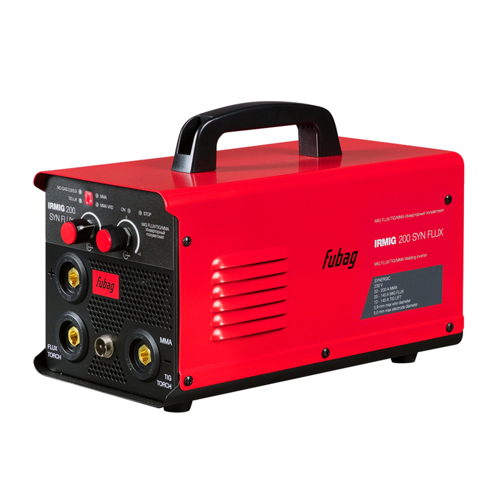 FUBAG IRMIG 200 SYN FLUX — синергетический полуавтомат для сварки самозащитной флюсовой проволокой без газа, дополнительно поддерживающий MMA и TIG Lift. Аппарат весит всего 6,2 кг, выполнен в прочном металлическом корпусе и оснащён удобной ручкой для переноски, что делает его практичным и надёжным в эксплуатации.