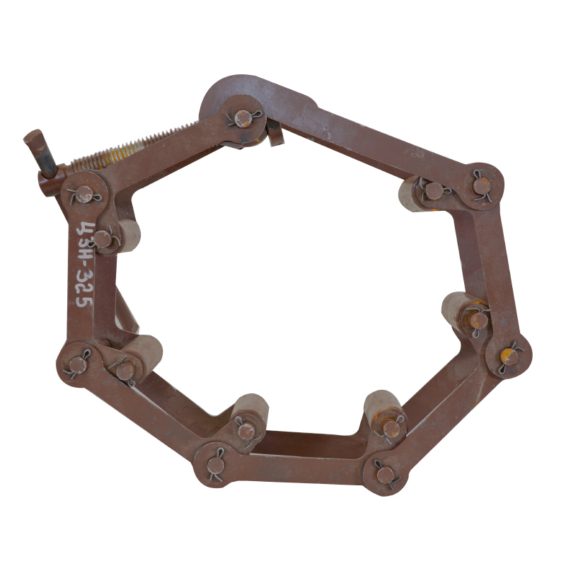 Центратор представляет собой многогранник, оснащенный нажимными роликами. Замыкающие звенья имеют также крюки и винтовой зажим, посредством которого уменьшается внутренний радиус центратора, что приводит к совпадению внешних поверхностей свариваемых труб. Резьба упорная тр5. В пятке не подшипник, а шарик.
