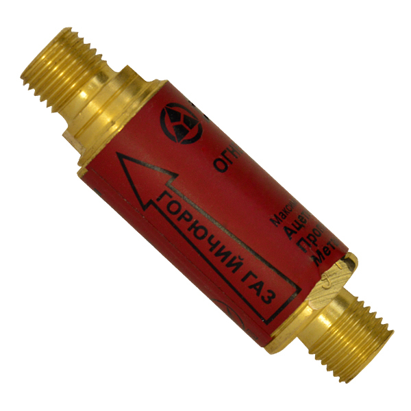 Предназначен для защиты кислородных и газовых рукавов от разрывов и возгорания при обратных ударах пламени. Устанавливается на резак или горелку.