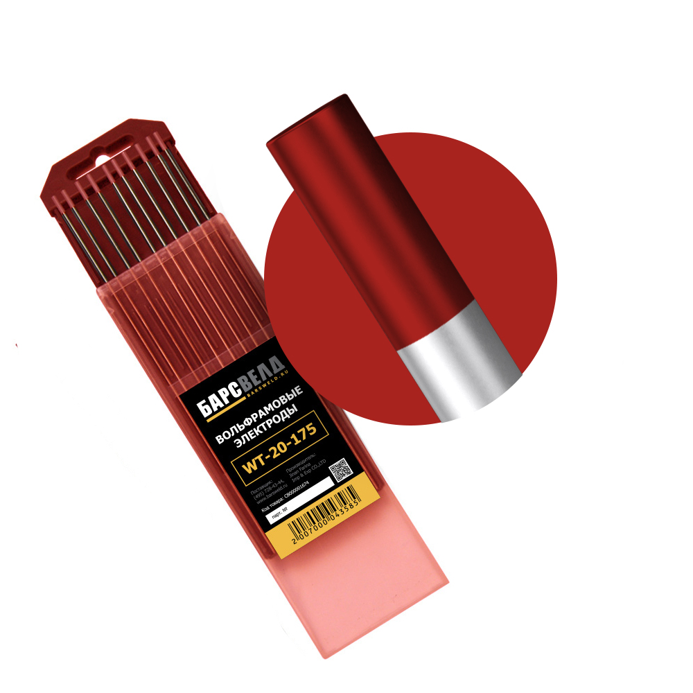 Электроды вольфрамовые БАРСВЕЛД WT-20 -175 ф 1,0 мм (DС, нерж.+цвет.мет., красные)