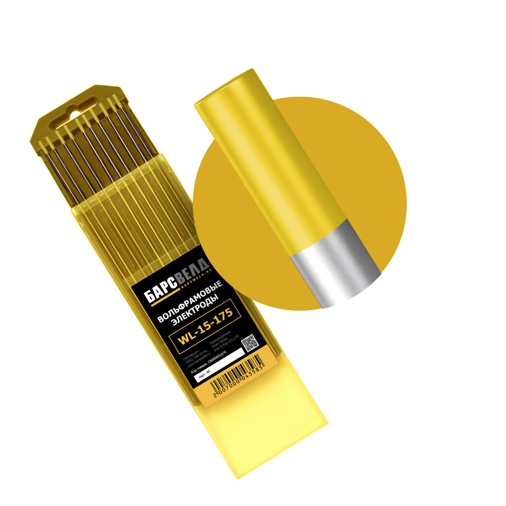 Электроды вольфрамовые БАРСВЕЛД WL-15 -175 ф 3,2 мм (AC/DC, алюм.+нерж., золотистые)