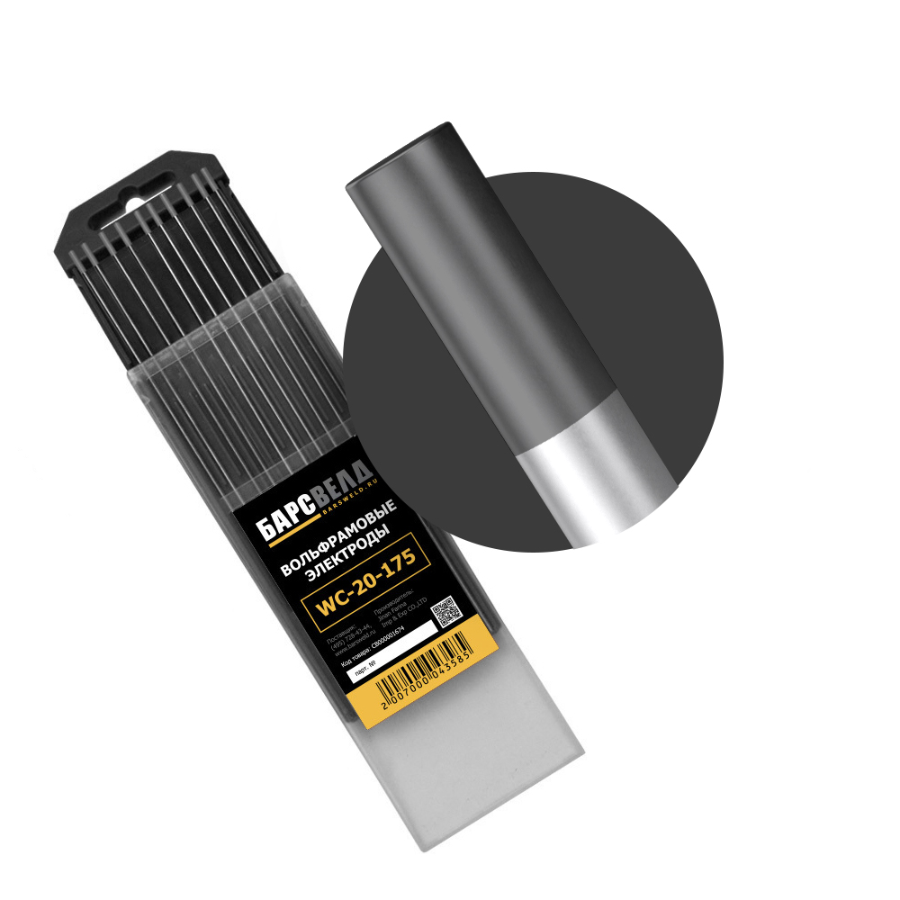 Универсальные вольфрамовые электроды WC-20 -175, сварка всех типов сталей и сплавов на переменном и постоянном токе (AC/DC).