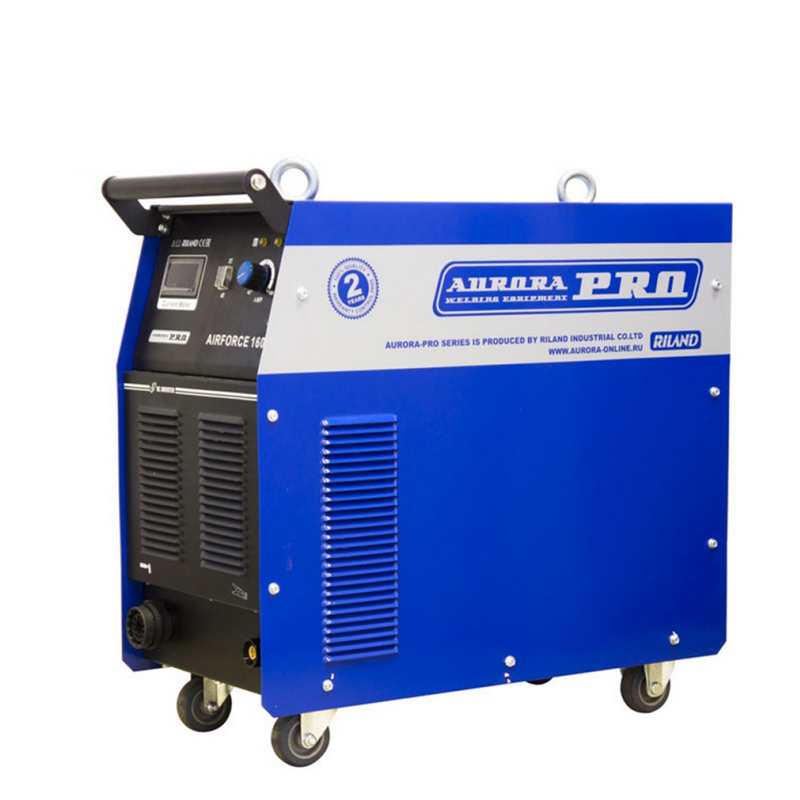 AIRFORCE 160 - самый мощный инверторный источник ручной плазменной резки из линейки AuroraPRO. Предназначен для разделки любых токопроводящих материалов: мягкие стали, нержавеющие стали, оцинкованные стали, алюминий, медь и различные сплавы. Работа с данным аппаратом отличается высоким качеством и высокой скоростью резки. Бесконтактный поджиг дуги с высокочастотным управлением увеличивает срок службы расходных материалов горелки и позволяет без перерывов резать сетку и поверхности с отверстиями. При режущем токе 160А, аппарат способен справляться с конструкционной сталью толщиной до 50мм. А при толщинах до 40 мм, АИРФОРС 160 уверенно чувствует себя даже при продолжительных работах. Для удобства перемещения предусмотрены 4 колеса и тельферные кронштейны (рымы). К аппарату необходимо также подключить компрессор для подачи сжатого воздуха.