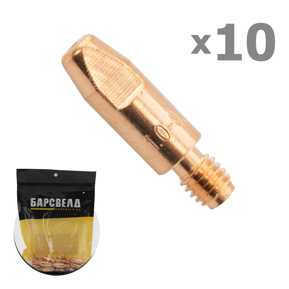 Контактный токосъемный наконечник БАРСВЕЛД E-Cu с резьбой М6, под проволоку диаметром 1,0 мм - расходная деталь полуавтоматических MIG/MAG горелок.